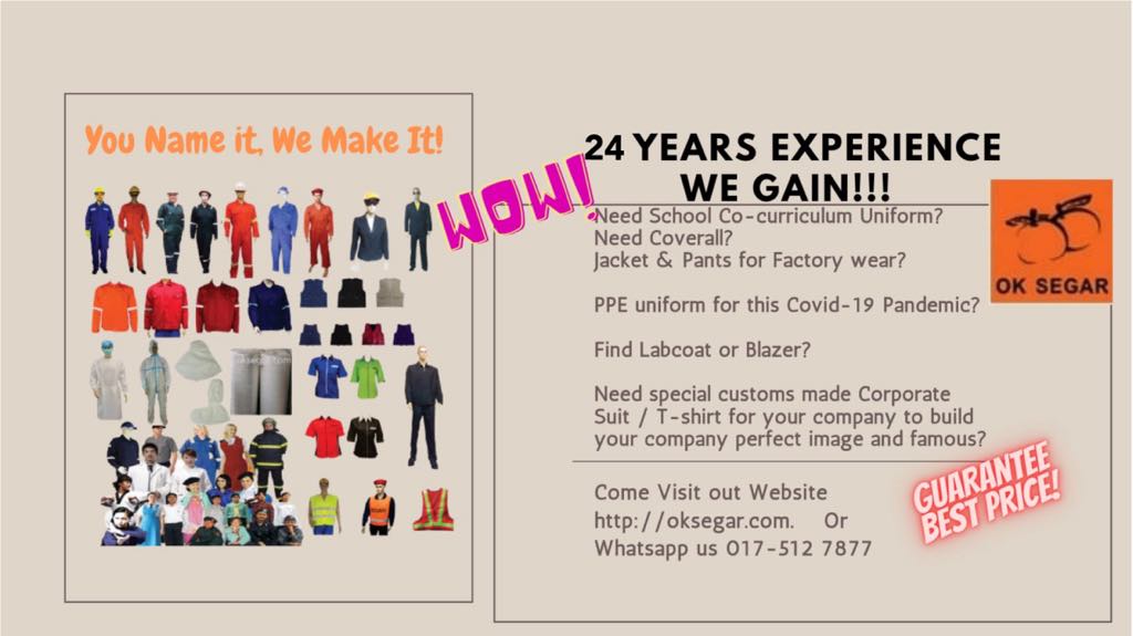 OK Segar Sdn Bhd is a uniform manufacturer company. Our main office is located in Kuala Lumpur (KL), Malaysia.